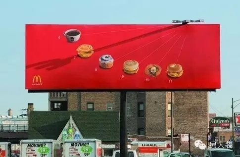 麦当劳早餐菜单,不同的时间指针会指向不同的食物。